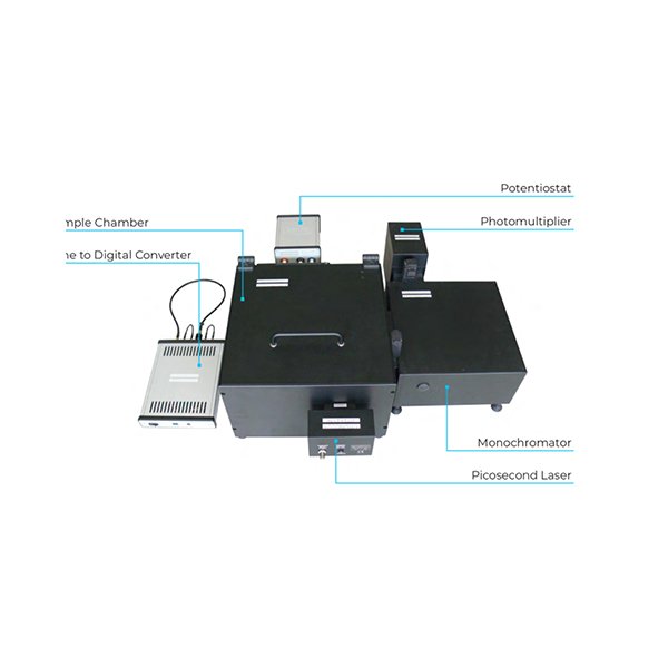 熒光分光光度計旨在探索暗淡樣品的熒光衰減。由於熒光現象的典型時間尺度跨越 10^-8 秒,因此需要更快的設置來觀察如此快速的過程。被檢查的樣品被皮秒激光脈衝激發。去激發後,係統測量樣品發射