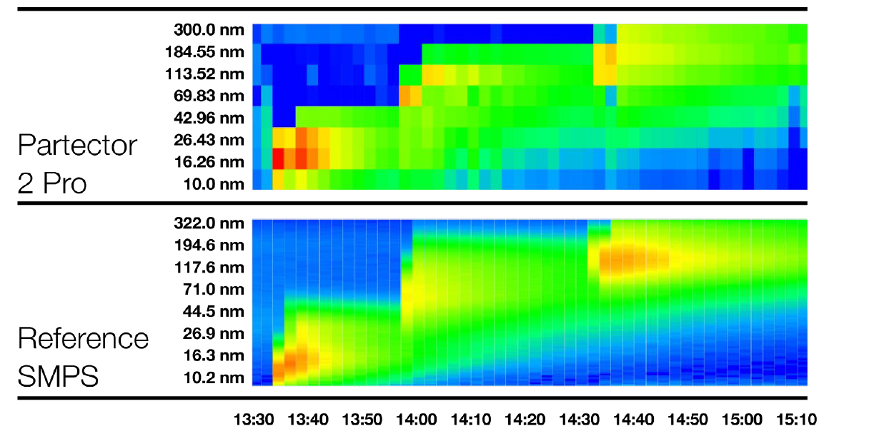 如果氣溶膠在掃描過程中發生變化,Partector 2 Pro會在不同的時間測量不同的氣溶膠,因此產生的尺寸分布將不準確,就像在其他掃描設備中一樣。