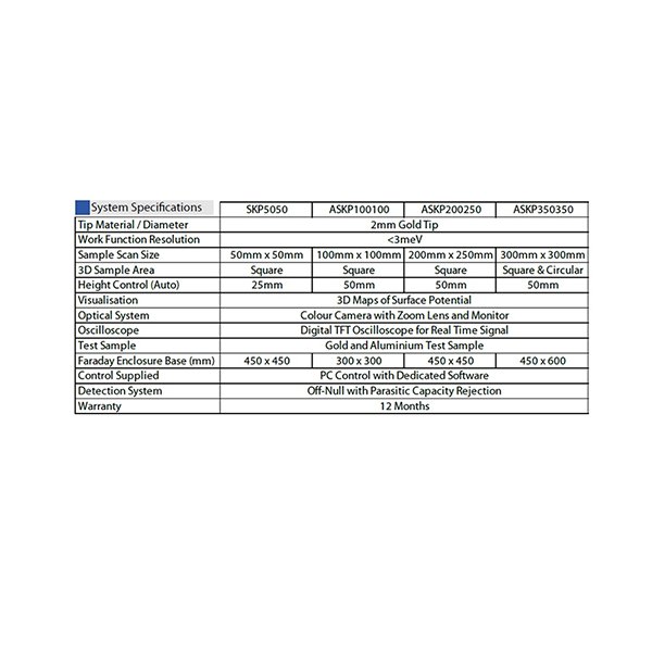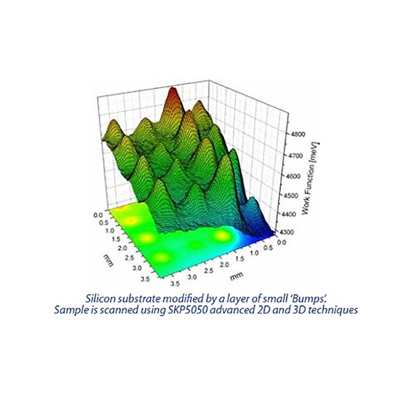 掃描開爾文探針是一種非接觸、非破壞性振動電容裝置,用於測試導電材料的功函或半導體材料表麵的表麵電勢,表麵功函。由材料表麵頂部的1-3層原子或分子決定,因而開爾文探針是一種非常靈敏的表麵分析技術。